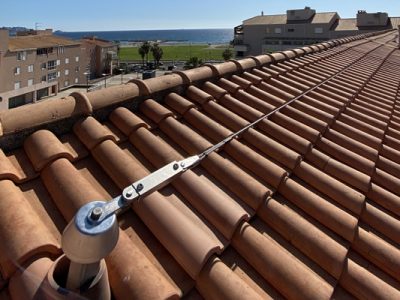 Notre ligne de vie peut s’installer sur charpente fermette ou chevron avec couverture tuiles ou ardoises. Homologuée pour 3 utilisateurs simultanés, elle autorise un entraxe maximum de 15ml