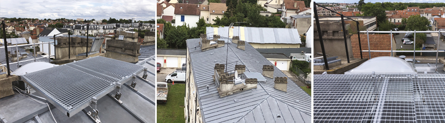 Notre équipe est intervenue à PARIS pour la pose d’une plateforme de supportage pour équipement technique. Adapté sur une toiture zinc à tasseaux avec 25 % de pente.
